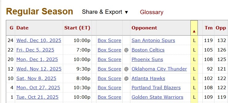 据统计,本赛季至今湖人战绩为17胜7负,在所有输的比赛中,湖人都至少输两位数,本赛季湖人输给的球队分别是:马刺、凯尔特人、太阳、雷霆、老鹰、开拓者和勇士。